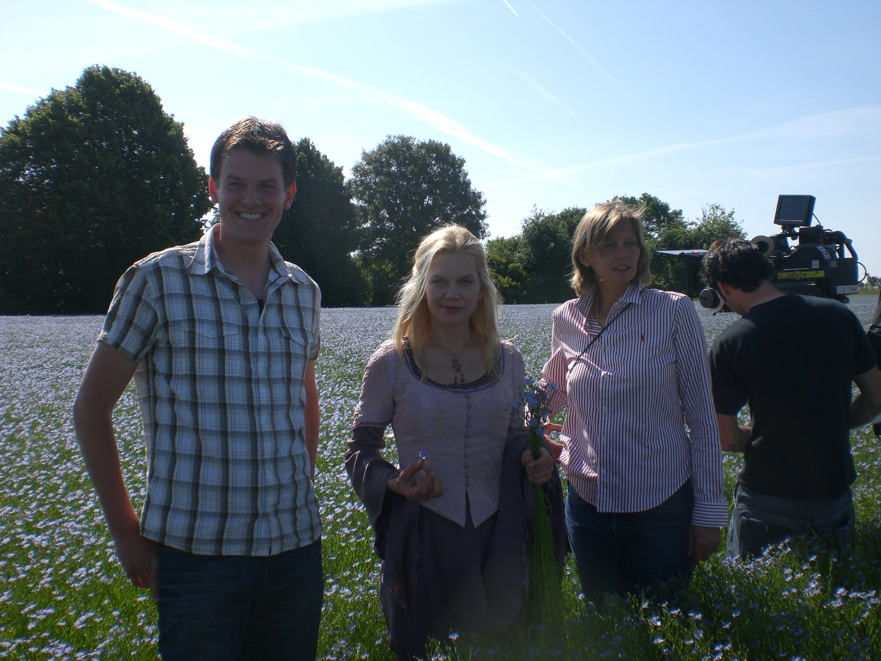 Am Wegesrand steht das Flachsfeld der Familie Igel in voller Blüte, inmitten der kleinen lila Blüten wandelt eine wunderschöne Frau, mit langen blonden Haaren, im Königinnengewand – Anna Loos, die bekannte Schauspielerin, spaziert durch das Blütenmeer. Es hat etwas Märchenhaftes, wie der Wind mit den langen Haaren der Schauspielerin spielt, das fliederfarbene Kleid mit dem blühenden Flachs harmoniert. „Anna wandelt durchs Flachsfeld wie im 18. Jahrhundert“, flüstert Aufnahmeleiter Florian Erhard, der seit einigen Wochen mit seiner Filmcrew im Schwabenland unterwegs ist. Auf der Burg Hohenzollern, Schloss Lichtenstein und in Bad Urach wurde schon gedreht. „Eine wunderschöne Gegend habt ihr hier“, beteuert der Kameramann, den es aus München zum ersten Mal hierher verschlagen hat.